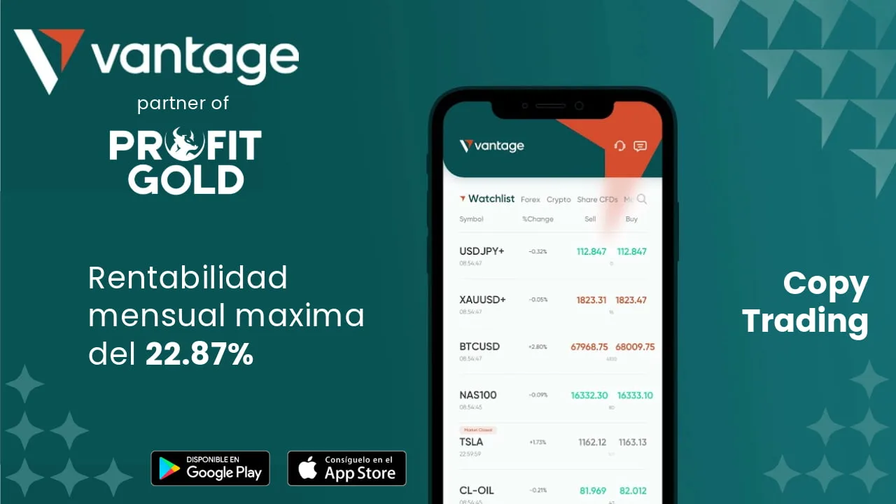 ³El servicio de Copy Trading de Profit Gold esta operado por un equipo de expertos los cuales aplican estrategias según los mercados para cumplir uno o varios planes de rentabilidad. Nuestros productos están dirigidos a cualquier tipo de inversionista sin ninguna característica o exigencia particular. Por lo anterior, este contenido no constituye una recomendación profesional para realizar inversiones en los términos del artículo 2.40.1.1.2 del Decreto 2555 de 2010.